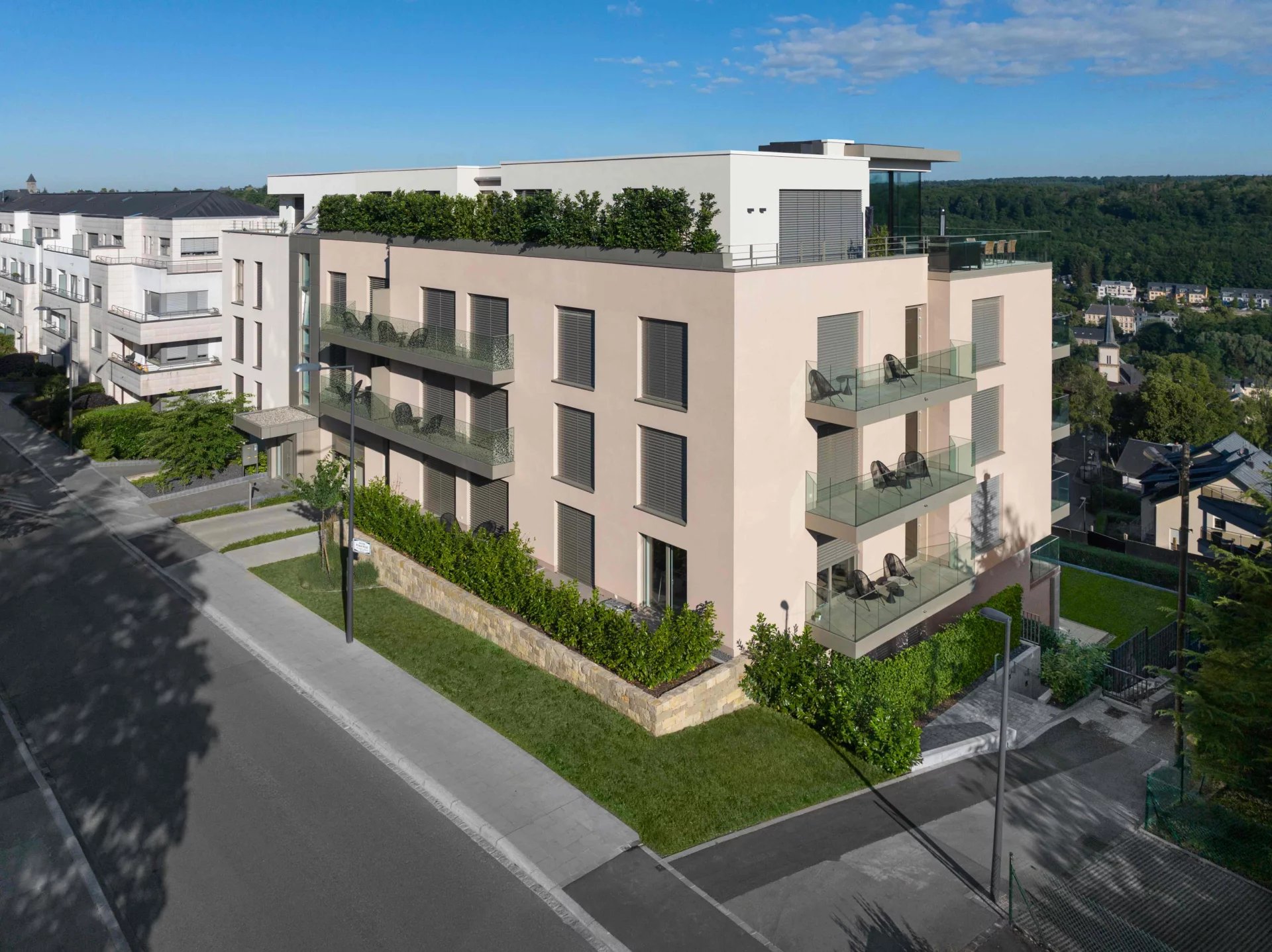 Profitez de son emplacement fantastique: les Institutions Européennes, les commerces, les écoles, le tram ainsi que le funiculaire de Pfaffenthal sont accessibles à pied. Profitez de l'orientation sud-ouest de ce quartier résidentiel calme et de sa magnifique vue sur la vallée d'Eich et Weimerskirch jusqu'au „Eeecher Feld“.